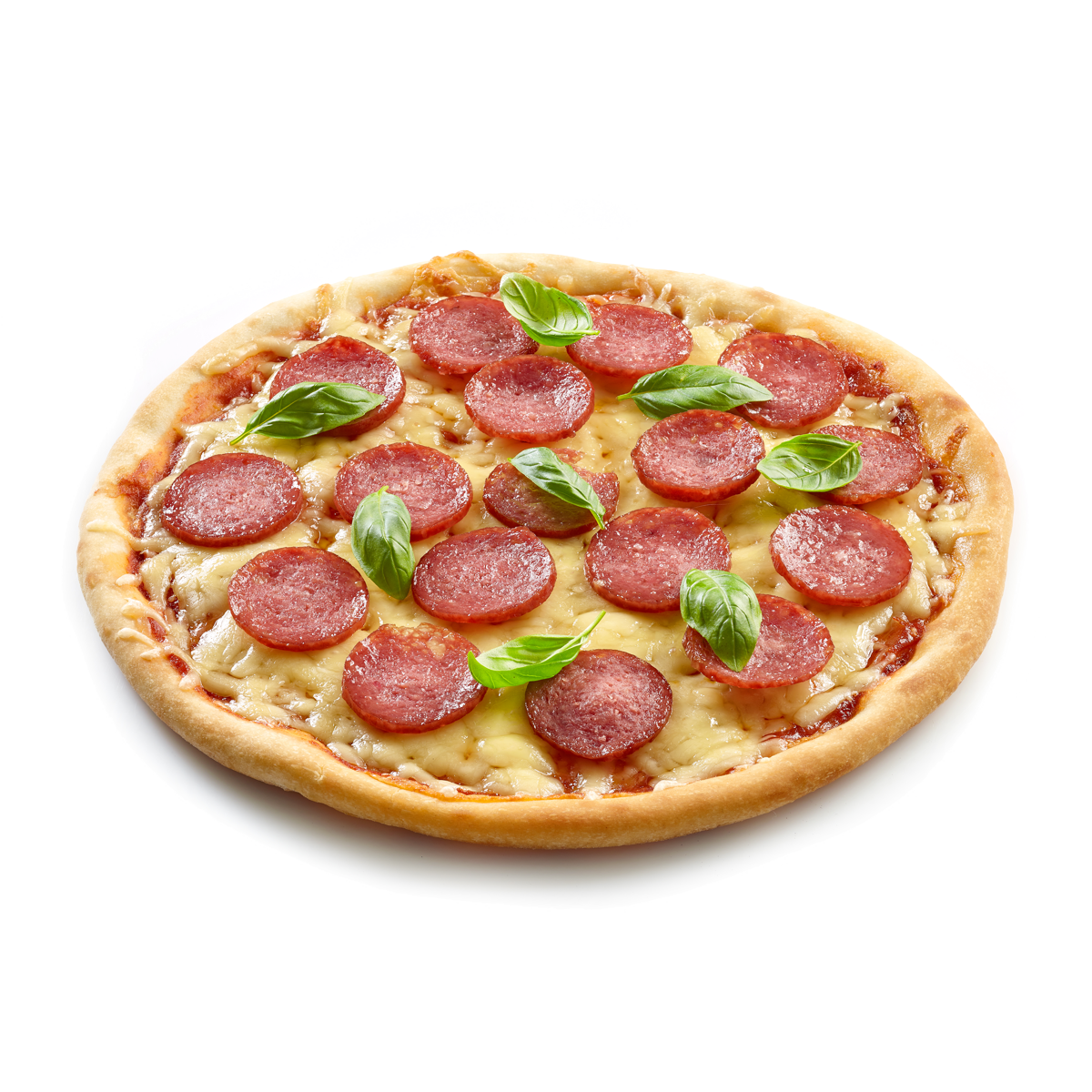 Salami, Tomaten, BBQ Sauce, Käse, rote Zwiebeln, pikante Gewürzmischung und Mozzarella 12″ / 420 g / No Spicy